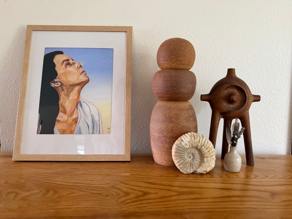 This is a print featuring an oil painting of portrait of the great artist Georgia O’Keeffe. After waking up at 3am and realizing I must paint her portrait I hopped out of bed to paint her and when finished learned it was her 131st birthday. This one feels like it holds a bit of her magic.