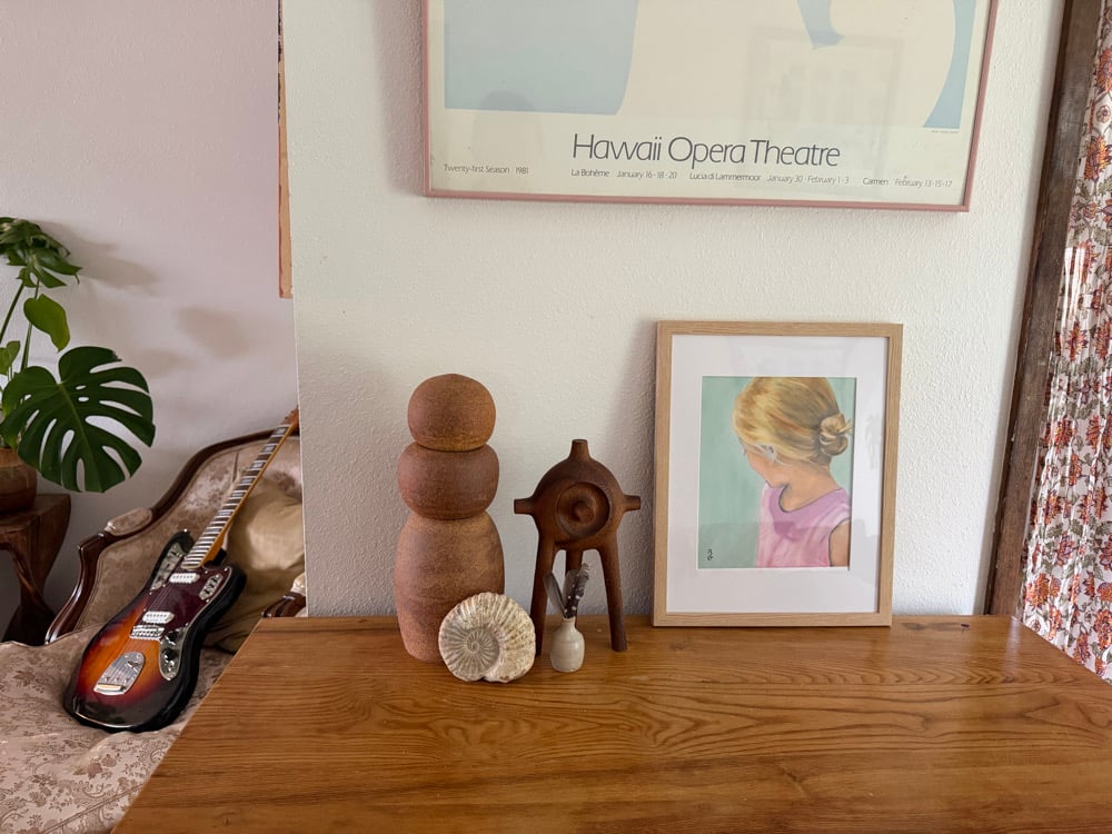 Features a portrait of my dearest Madeleine when she was 7 years old in our sunny yard on Bainbridge Island. Originally painted in oil.