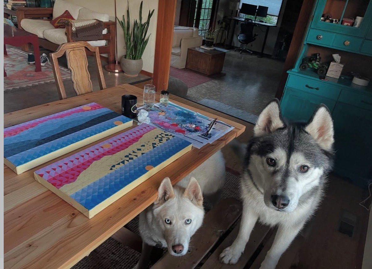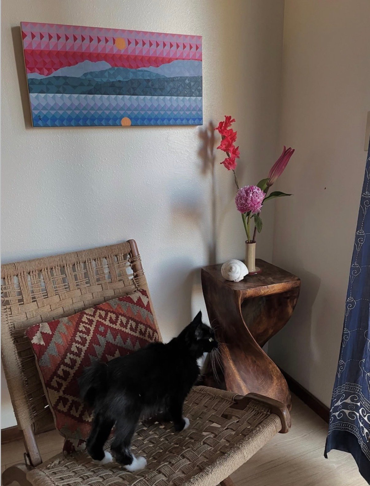 This painting features a colorful sunset of Discovery Bay beneath a magenta sky.